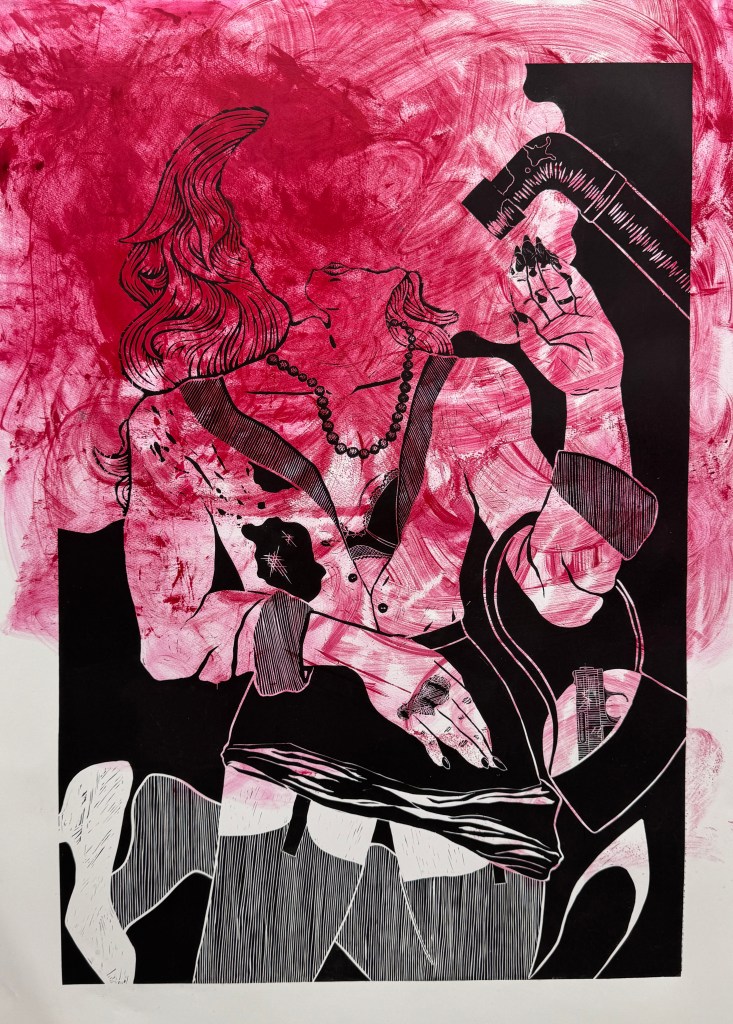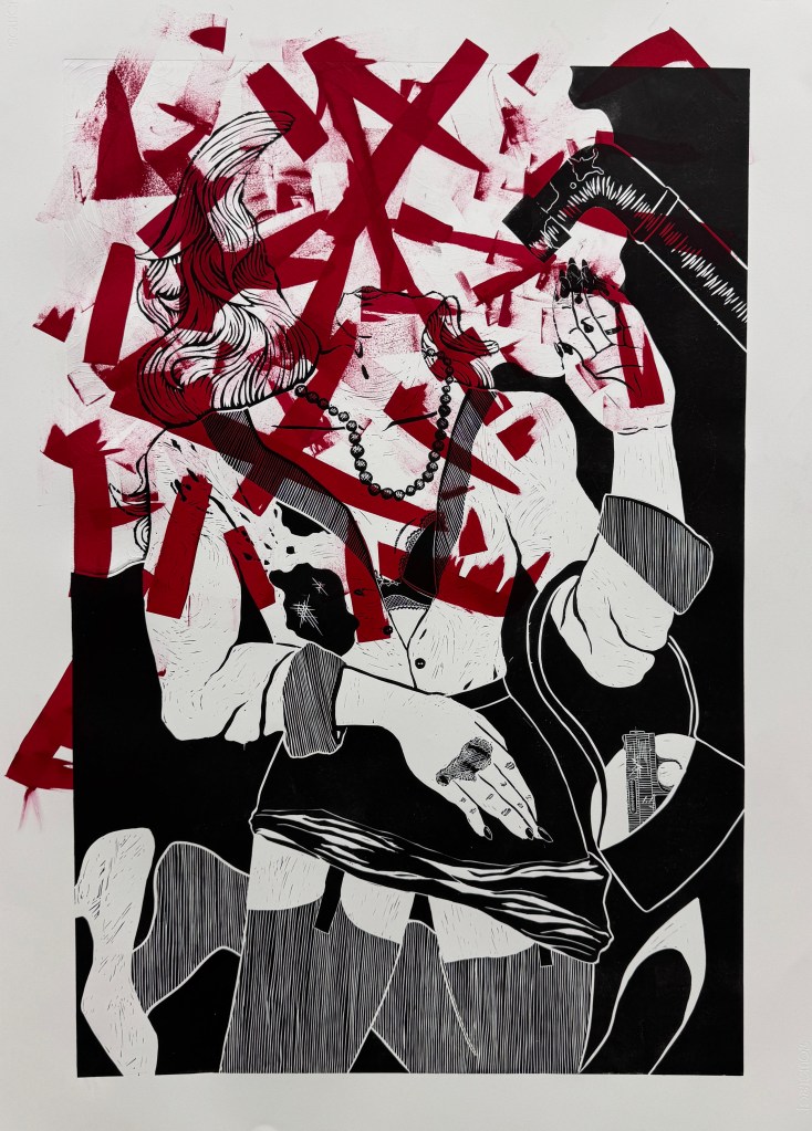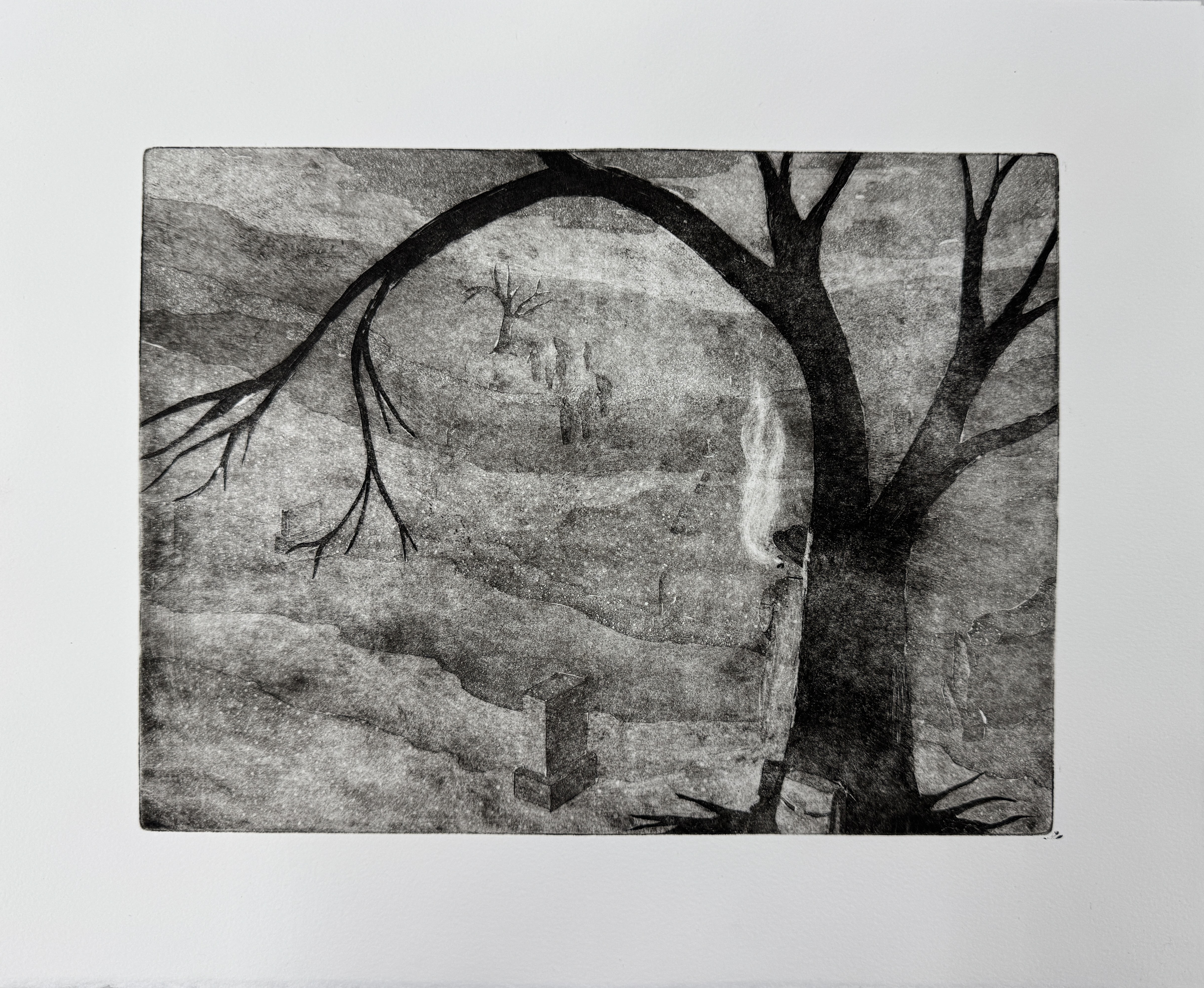Funeral Scene, Intaglio. Two selected prints on different paper. 12″x8″ 2025.